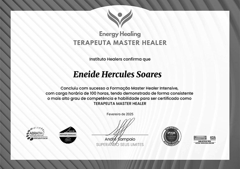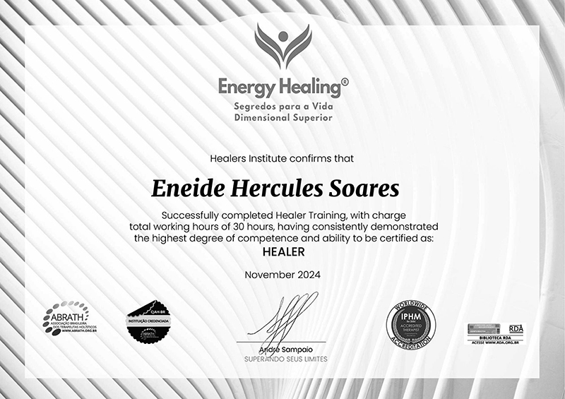 I am a licensed Master Healer Therapist, by the Healers Institute.